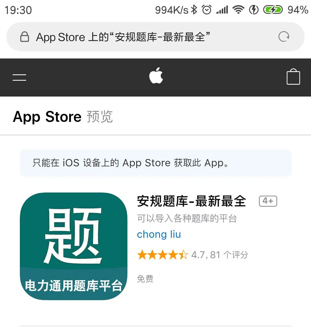 可在AppStore中搜索“安规题库-最新最全”,作者chong liu