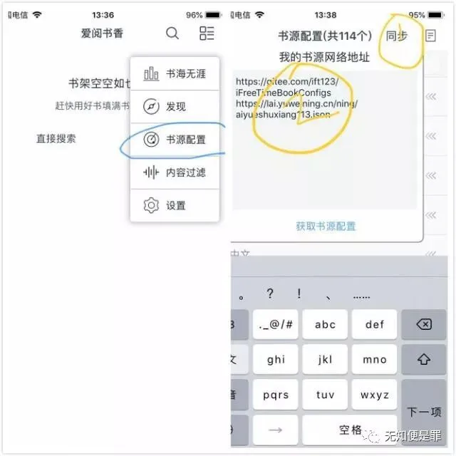 第一款那是苹果手机上的爱阅书香。具备以上的特点,简洁无广告,导入书源,既可以全网搜索观看了。导入很简单,单击右上角书源配置,然后选择同步把书源网址复制进去就可以了。