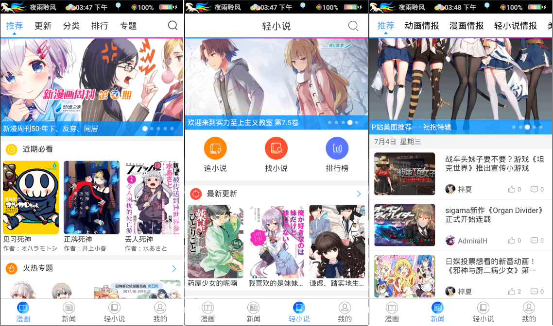 站内之前发布过多款看漫画的工具,然而都不是长命的主,没过多长时间就有热心群众反馈不能用了。动漫之家是由同名网站出的一款免费看漫画的APP应用,至于官方所说的海量漫画资源大家也别当真,主要是偏二次元方面的资源多点,以后有其他的工具老夜也会第一时间在站内与大家分享,唯一的好处就是全部免费阅读,而且还有小说和新闻量大专栏。无论你是宅男腐女、高富帅白富美、直男还是弯的!动漫之家app中定有你心中那迷の动漫画的存在(括弧,这一句是官方讲的)!