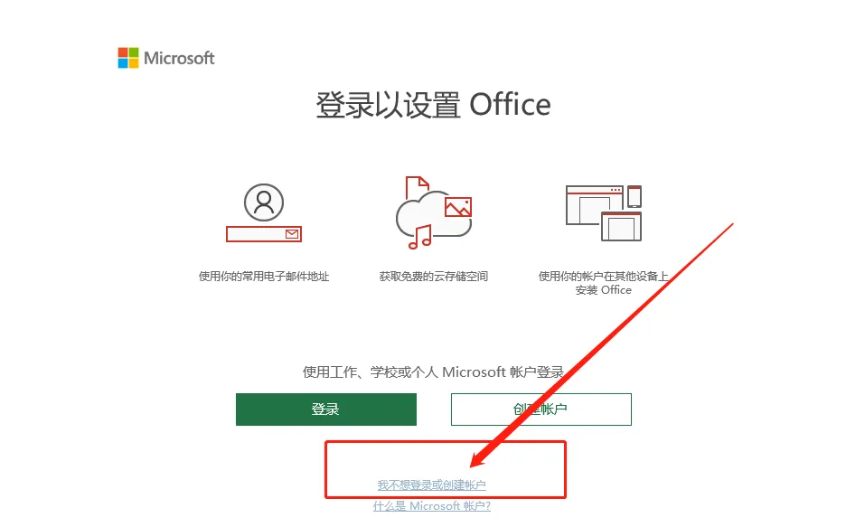 【打开Word之后,点击我不想登录或者创建账户】