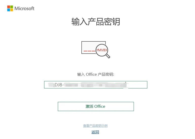 【输入客服给你的密钥,点击激活Office】