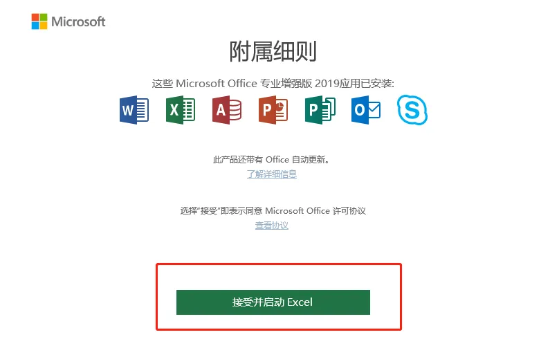 【点击接受并启动,直接把Word、Excel右上角点击关闭】
