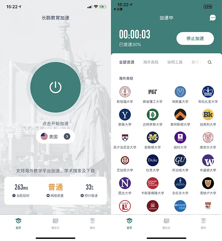 长鹅教育加速器:这是一款专门为学生和学者提供的,开启之后可以直接访问国外很多学习网站,供学生们去搜索一些国外的论文和学习资料。目前支持安卓和iOS。目前有8条加速线路,最好选择亚洲的路线,这样开启加速的成功性更高。
