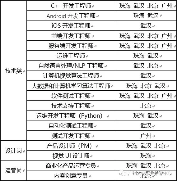 招聘岗位:Android软件开发工程师、C++开发工程师、iOS开发工程师、前端开发工程师、服务端开发工程师、运维工程师、自然语言处理/NLP工程师、计算机视觉算法工程师、大数据和机器学习算法工程师、软件测试工程师、测试开发工程师、技术支持工程师、运维开发工程师(Python)、自动化测试工程师、产品设计师(PM、视觉UI设计师、商业化产品运营专员、内容创意专员