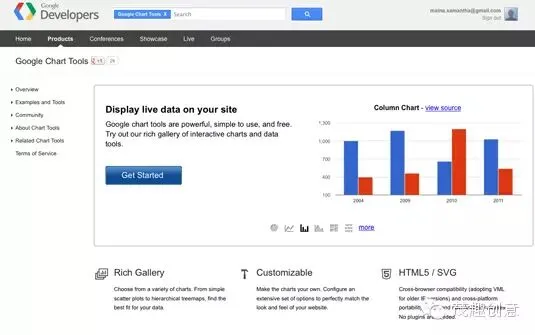 谷歌强大的图表工具,使用方法很简单,而且是免费的。你可以你所需的外观和感觉匹配你的图表,通过连接实时数据,Google Developers是一个完美的网站信息图表生成器。网址:https://developers.google.com/chart/