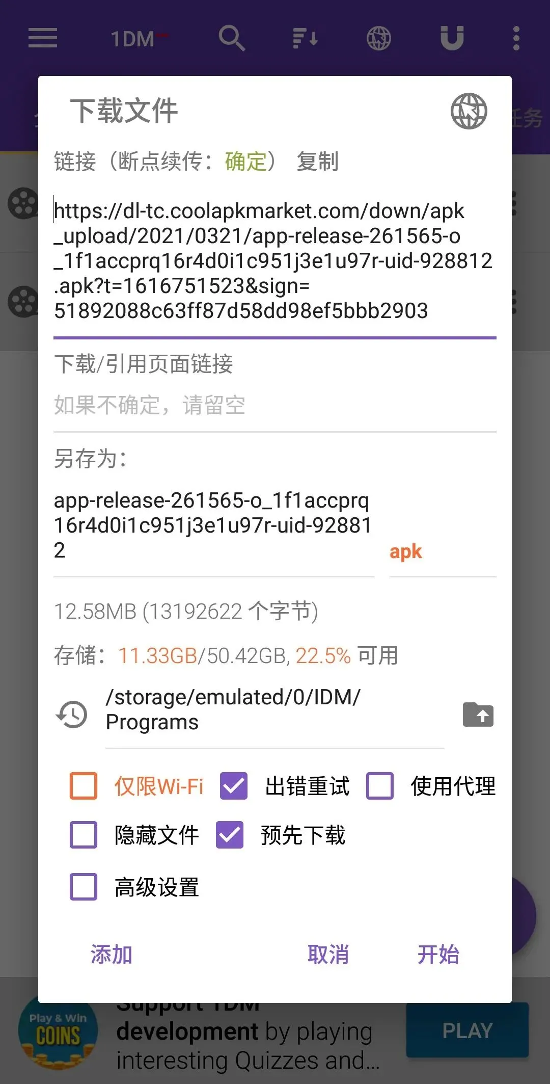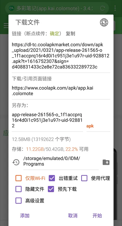然后把下载链接粘贴进去,点击【连接】,再点【开始】即可添加一个新的下载任务