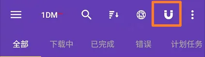 方法二:使用1DM内置嗅探 功能下载音乐/视频,在软件首页,点击从右到左的第三个【地球图标】,此时把你的网页链接粘贴进去,如果1DM嗅探到了资源,则有红点显示,如下图