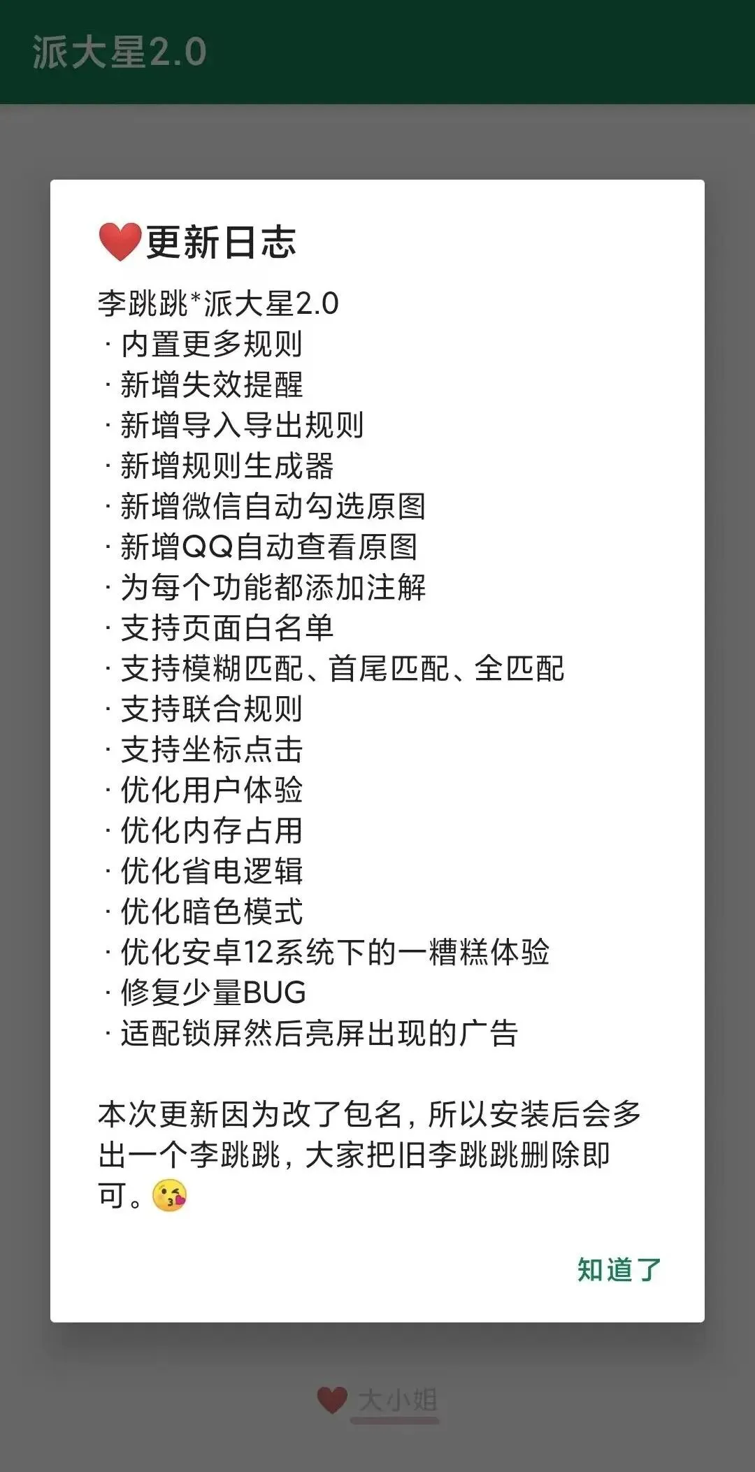 本来准备放弃抵抗的开发者最近公布了全新2.0版本,名为 MissLee,可自定义规则跳过任意弹窗!