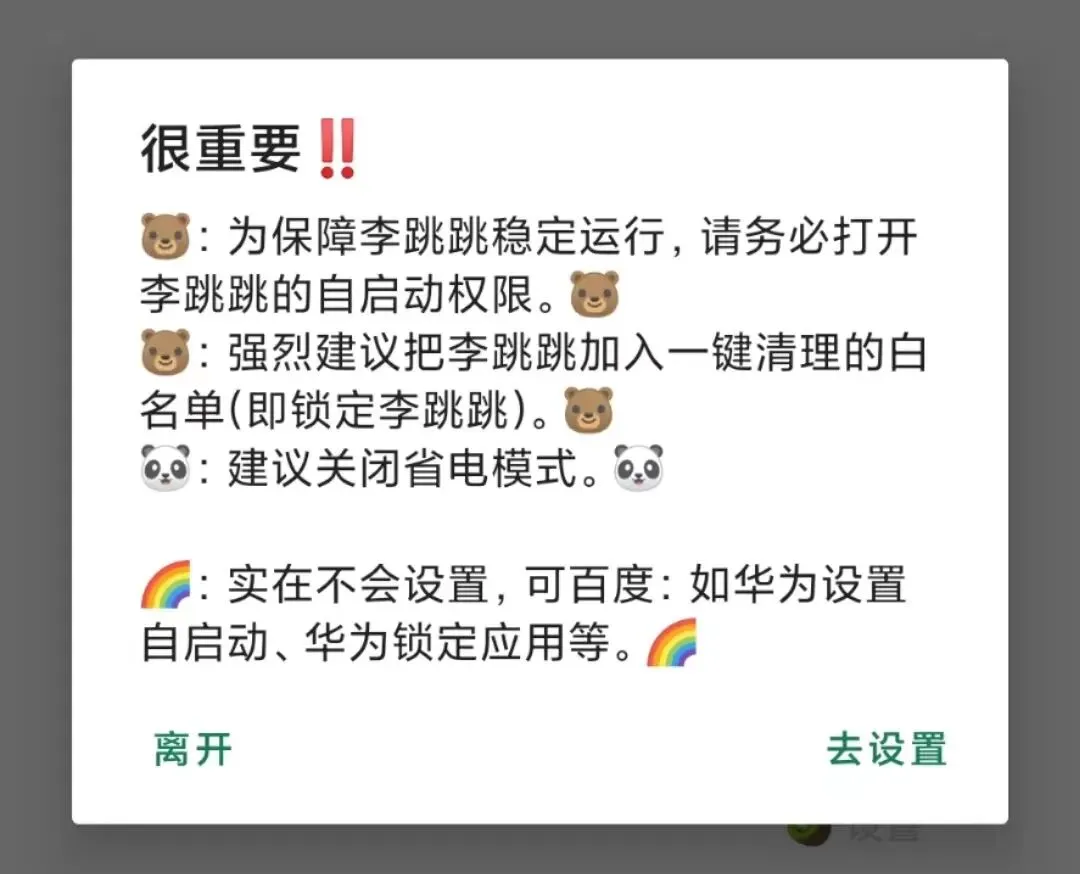 若李跳跳失效或软件首页的开关无法打开,删除重装或重启手机,然后按照李跳跳里面的「重要提示」进行设置。