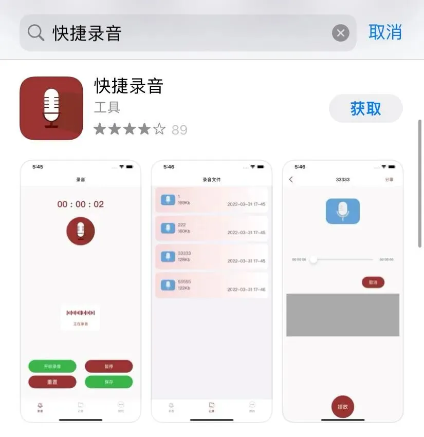这是一款伪装上架到苹果 App Store 的一款观影软件,大家只需打开 App Store 搜索“快捷录音”即可找到。