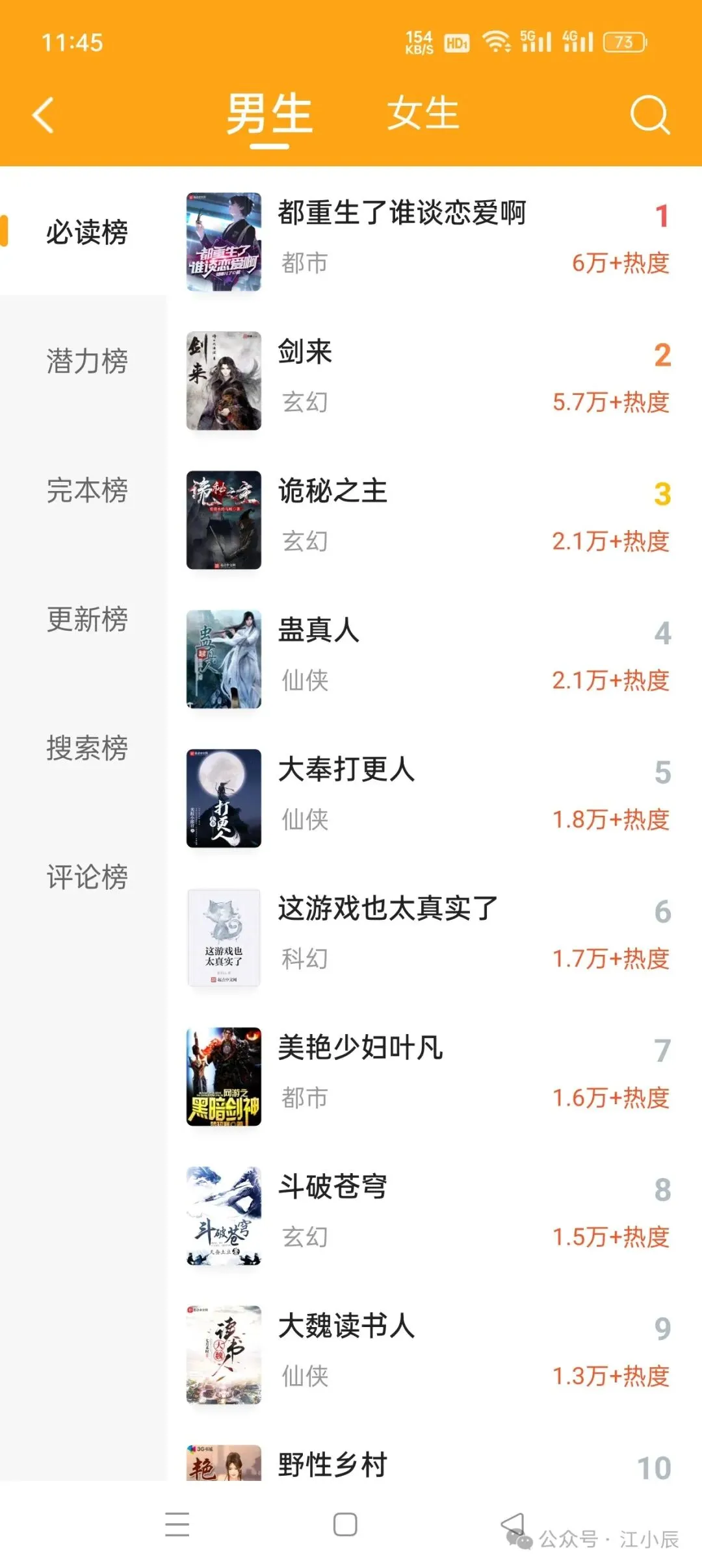 首页有分类、排行榜、完结、新书等分类,书源非常丰富,比那些网络整合接口还稳定好用