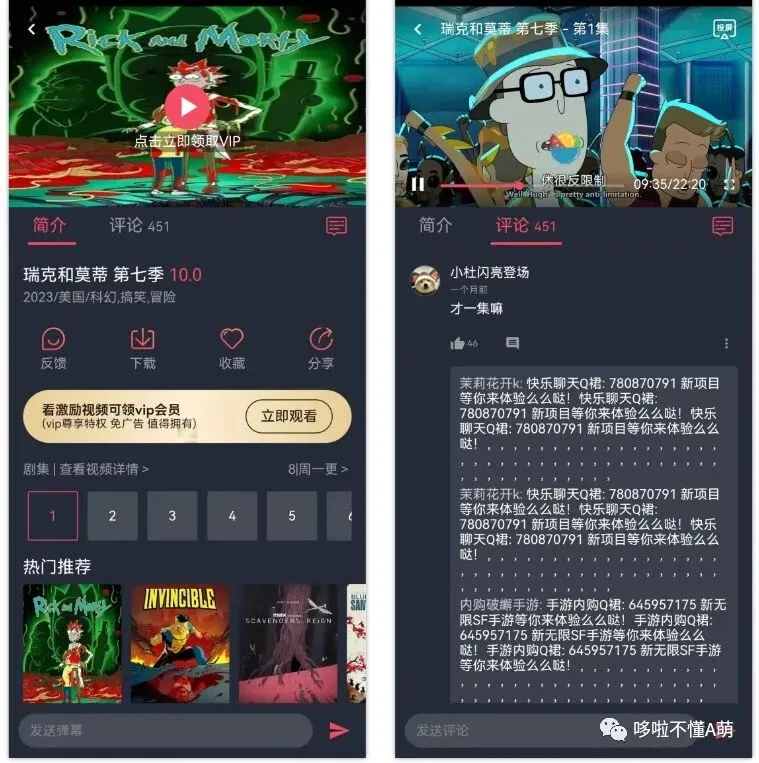 播放的时候直接选择点击获取VIP就行,不用看小广子,加载速度特别快,随便拖动进度条秒播啥的完全无压力,而且画质也相当高清,软件的加载速度特别快,并且画质高清,还提供了弹幕和评论功能,为用户带来更加丰富的观看体验。