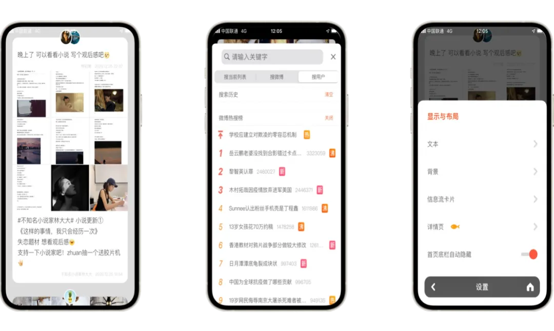 同时也包含了热搜,你也可以在设置里进行更加详细的设置,比如文本与图片呈现的形式,字体的更改、背景的修改等等。
