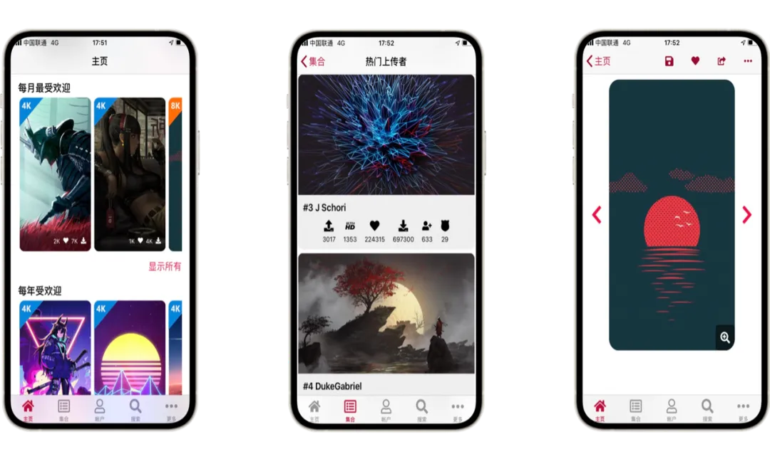 一款小众壁纸软件,里面的壁纸也比较小众,壁纸的分辨率最高可以达到8K,并且软件里的壁纸都可以免费下载