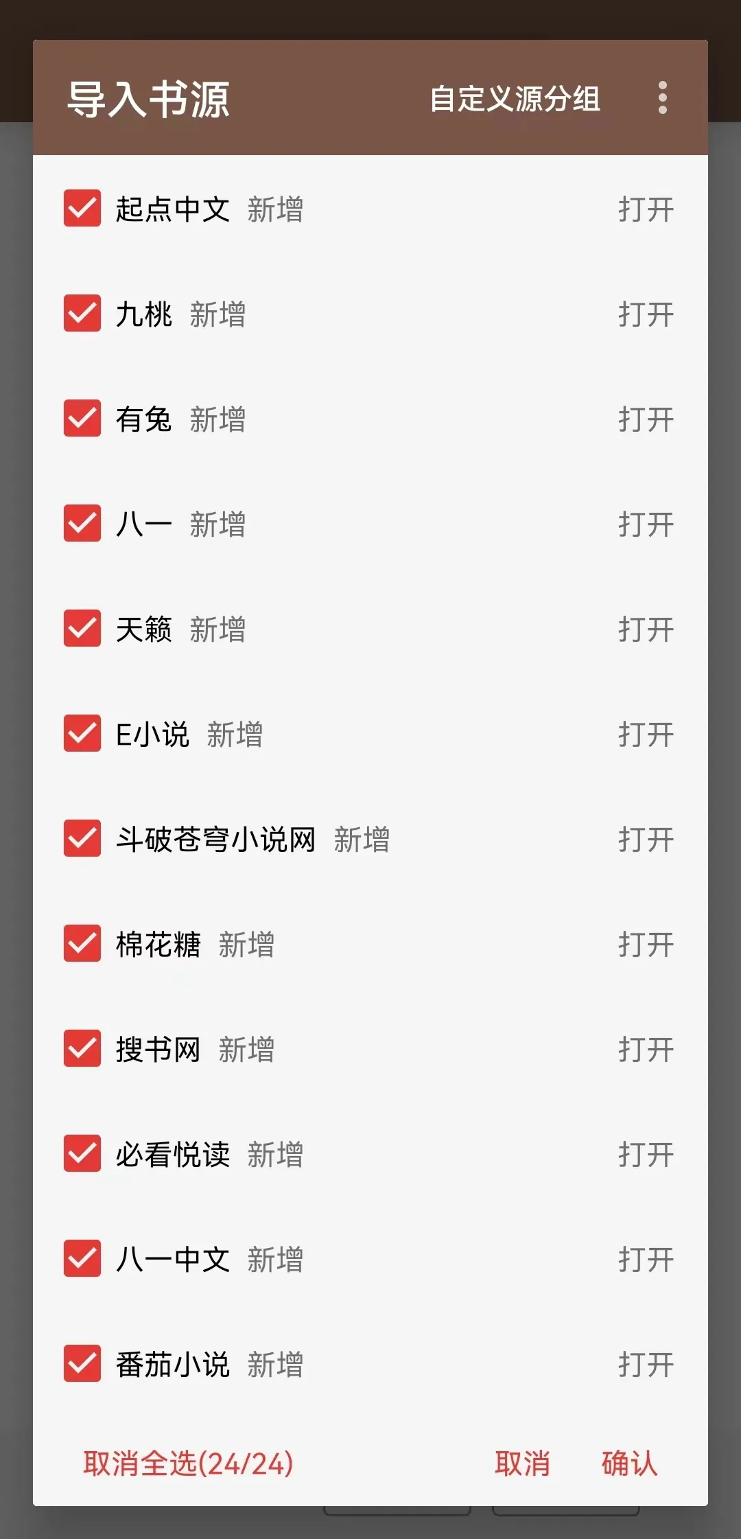 导入这个网络地址,可以为阅读 APP 新增 24 项书源。