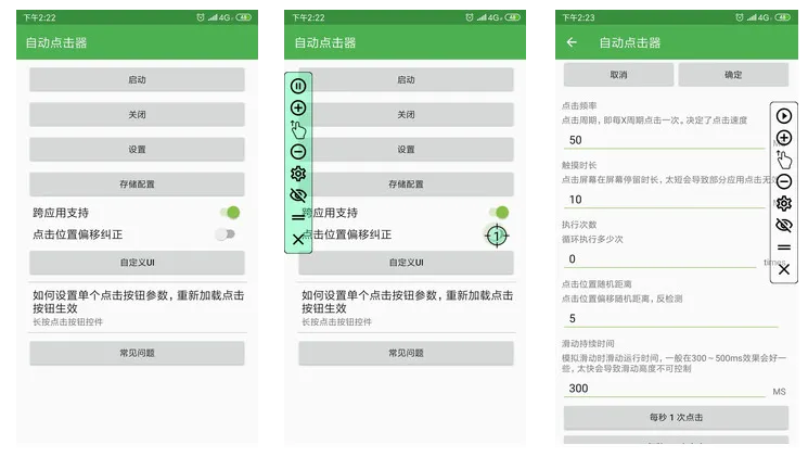 这样,它就能悬浮在其它的应用上面,当你设置好点击位置的时候,它就能无限点击。