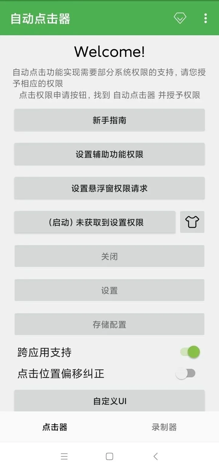想使用这款 App 得先开启辅助功能权限和悬浮窗权限。