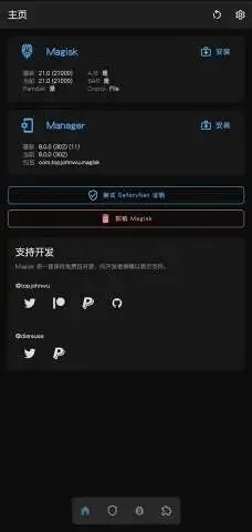「Magisk」是一套用于定制 Android 的开源工具,支持高于 Android 4.2 的设备。它涵盖了 Android 定制的基本部分:root、引导脚本、SELinux 修补、移除 AVB2.0 / dm-verity / 强制加密等。