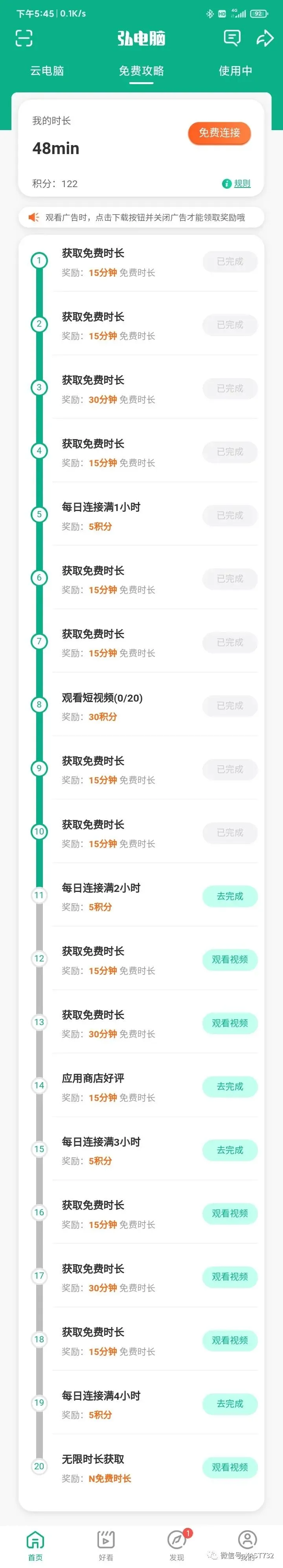 总而言之,这个软件还是很良心的。并且它是免费的,每天只需要完成几个非常简单的小任务(大多只是看一段几十秒钟的广告),便可以轻松获得至少四个小时的使用时间(次日零时前有效)。