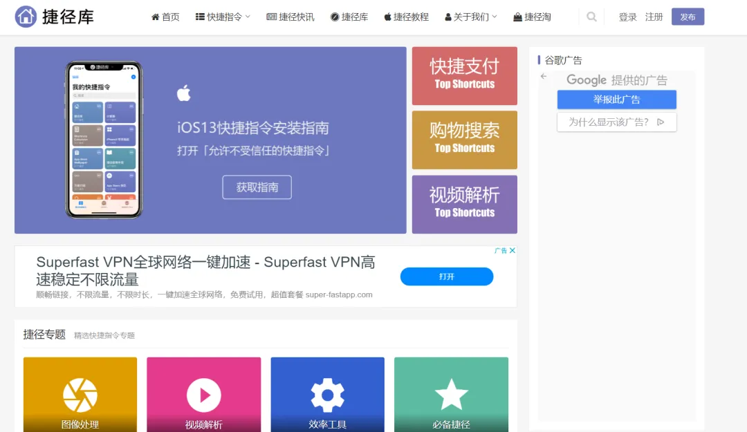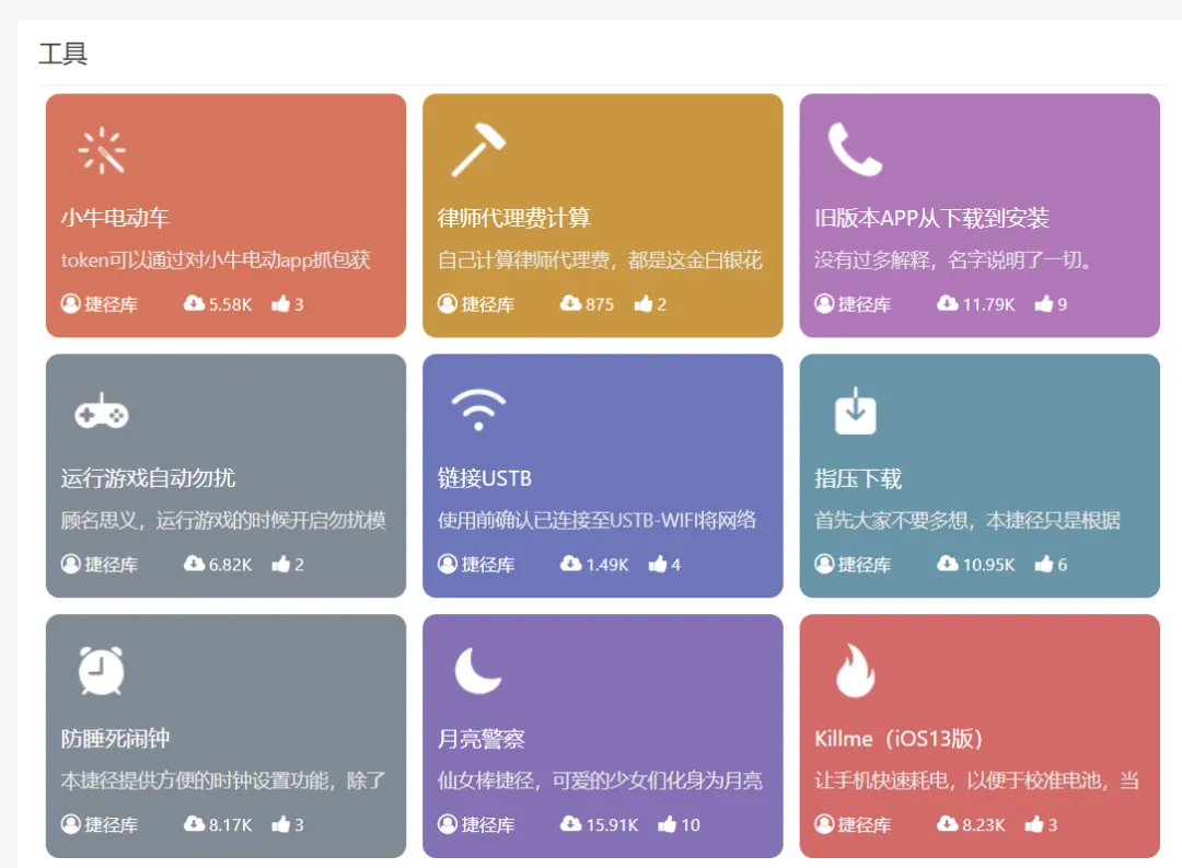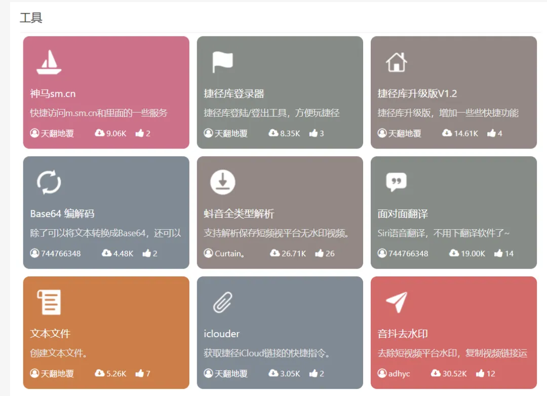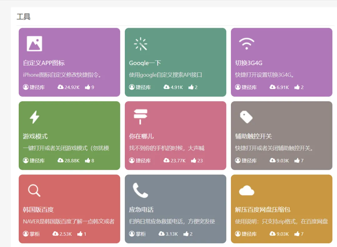 捷径库是苹果捷径规则分享网站,网站提供了丰富又好用的中文捷径。它提供了工具,图片,影音,娱乐,阅读近百种实用捷径,使用捷径请先把苹果手机系统升级到 iOS12,并在 App Store 下载”捷径“APP ,复制捷径地址,在手机Safari浏览器打开,即可添加捷径。