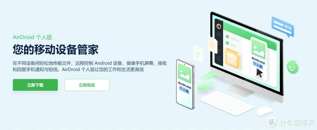 Airdroid在不同设备间轻松地传输文件,远程控制 Android 设备,镜像手机屏幕,接收和回复手机通知与短信。最多可连接10台设备,可以管理、传输、安全备份各种格式的文件,提供严谨的数据隐私管理。