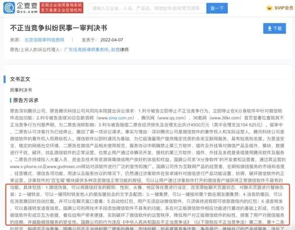 工商资料显示,4月7日,腾讯与国鼎网络空间安全技术公司的一审诉讼裁判文书公开。