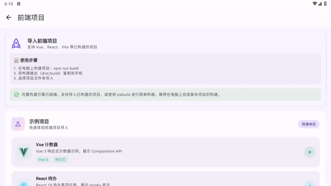 这是一款能把网页、前端项目或视频图片一键变成手机App的手机应用程序,支持导入Vue/React项目、上传HTML文件,或直接把网站转成桌面应用,还自带抖音、B站、小红书无水印下载功能。