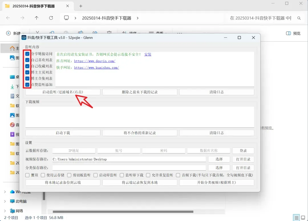 抖音 快手下载工具 绿色单文件!监听式下载超智能,功能多到离谱