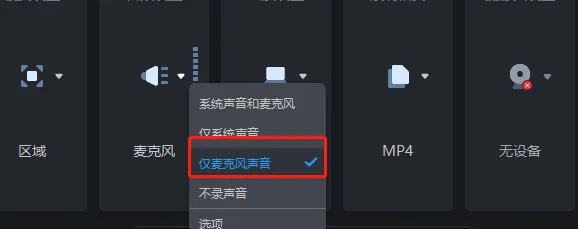 如果是录制游戏视频解说,只想录制自己说话的声音,不想听到游戏的声音,那么你可以选择【仅麦克风录制】模式,其它也一样,根据需求选择即可。