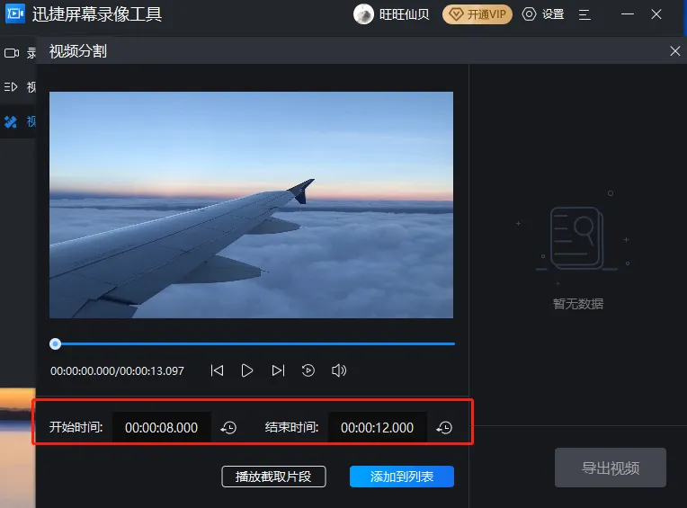 比如录制好的视频有些画面不需要,可以直接设置“开始时间”和“结束时间”就能截取到自己想要的那部分了。外部视频导入也是支持该操作的。