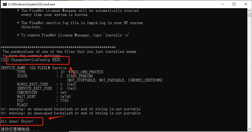 第六步:运行成功后,提示【服务启动成功】,然后右上角关闭即可。