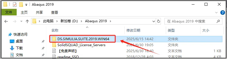 第十步:返回第二步解压的文件夹,打开【DS.SIMULIA.SUITE.2019.WIN64】文件夹。