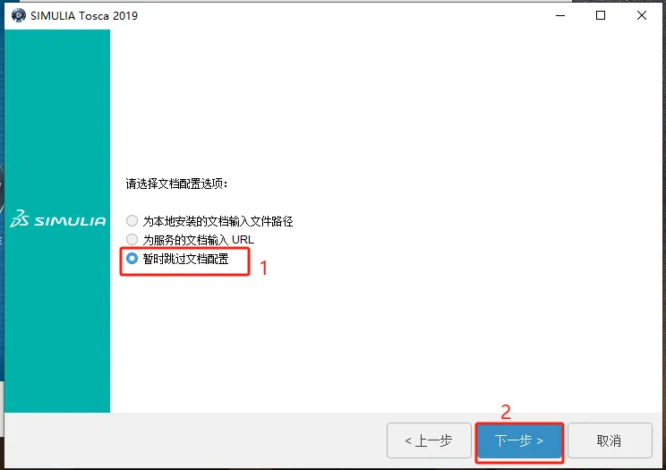 第四十六步:选择【暂时路过文档配置】,然后点【下一步】。
