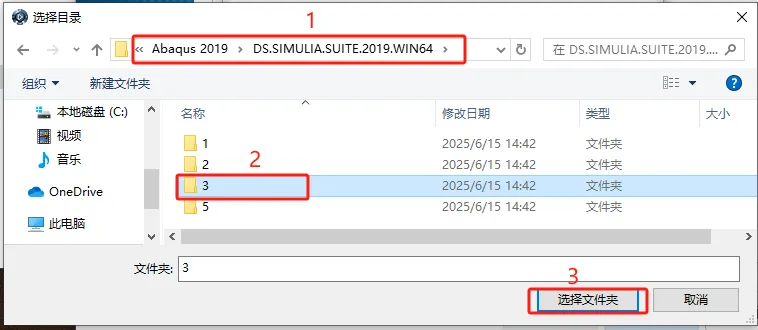 第五十四步:依次选择第二步解压的文件夹,软件文件夹,然后选择【3】文件夹,点右下角【选择文件夹】。