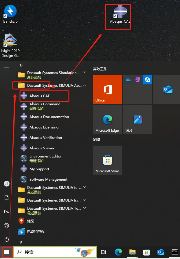 第六十五步:点开始,找到D开头的文件夹的文件,如下图所示,找到【Abqqus CAE】,将其拖到桌面。