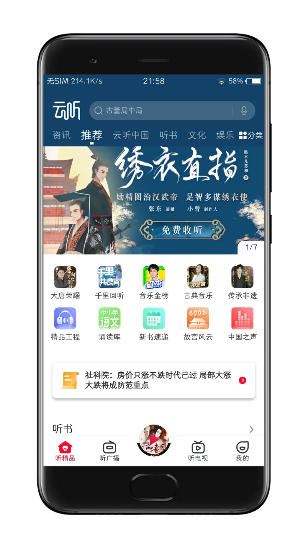 云听:听相声、评书、音乐、脱口秀、儿童故事、广播剧……随意听!一个专业的听书APP,它有自己的听书资源库,还有广播电台和电视栏目都可以听。特别版你懂得,V1P专区直接听,全是真人的朗读,听书体验真的非常好!