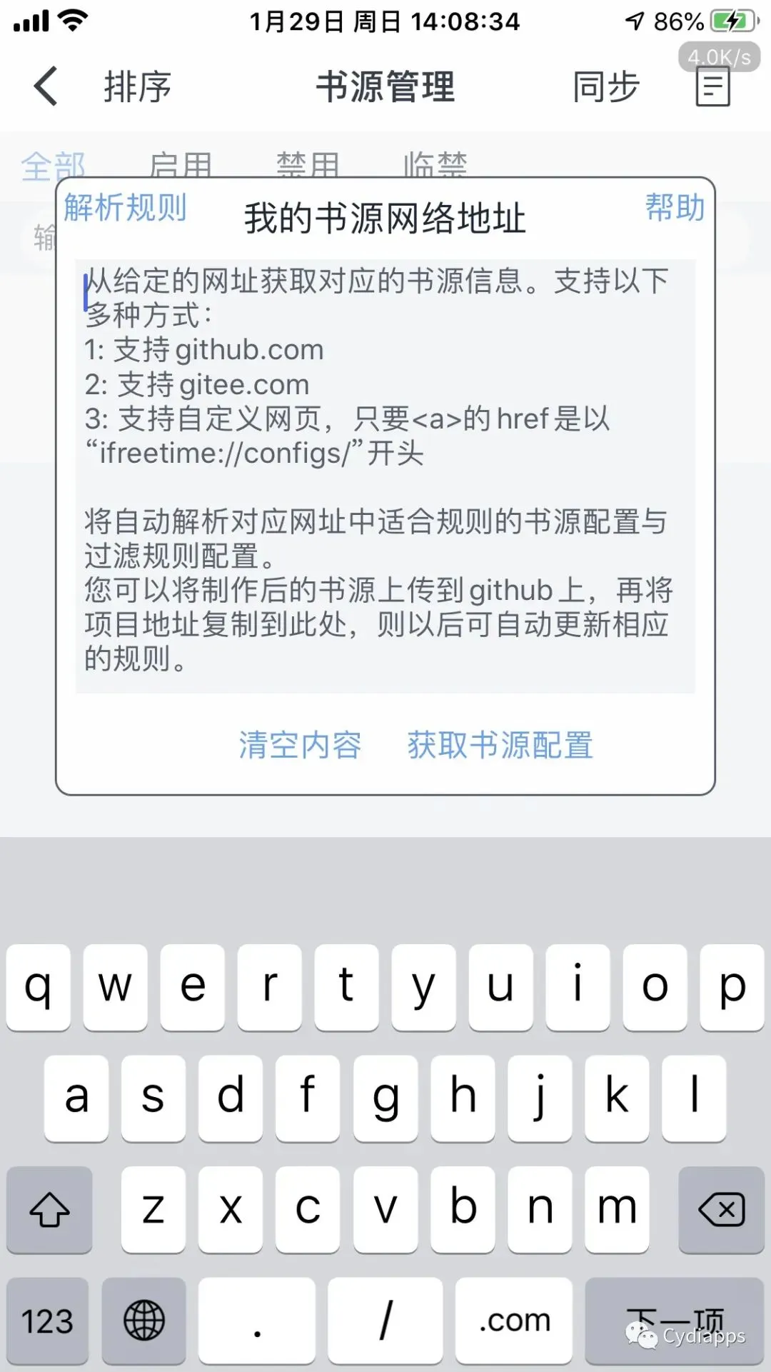 方法三:如果你有其它的在线书源,直接在如图的位置粘贴书源即可