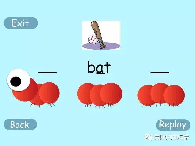 自然拼读的学习进入下一阶段:单词的合成(Blending) 和分割(Segmenting)。这款APP刚好包括了这两个方面的训练。拿毛毛虫作比喻,把毛毛虫分成三部分,单词分割法也要把单词中的音分成三个部分。