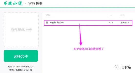 书旗小说的WIFI传输功能还是很赞的。PC可以直接将txt等相关文档直接上传到书旗APP的书架里。用户可以直接进入APP阅读小说。