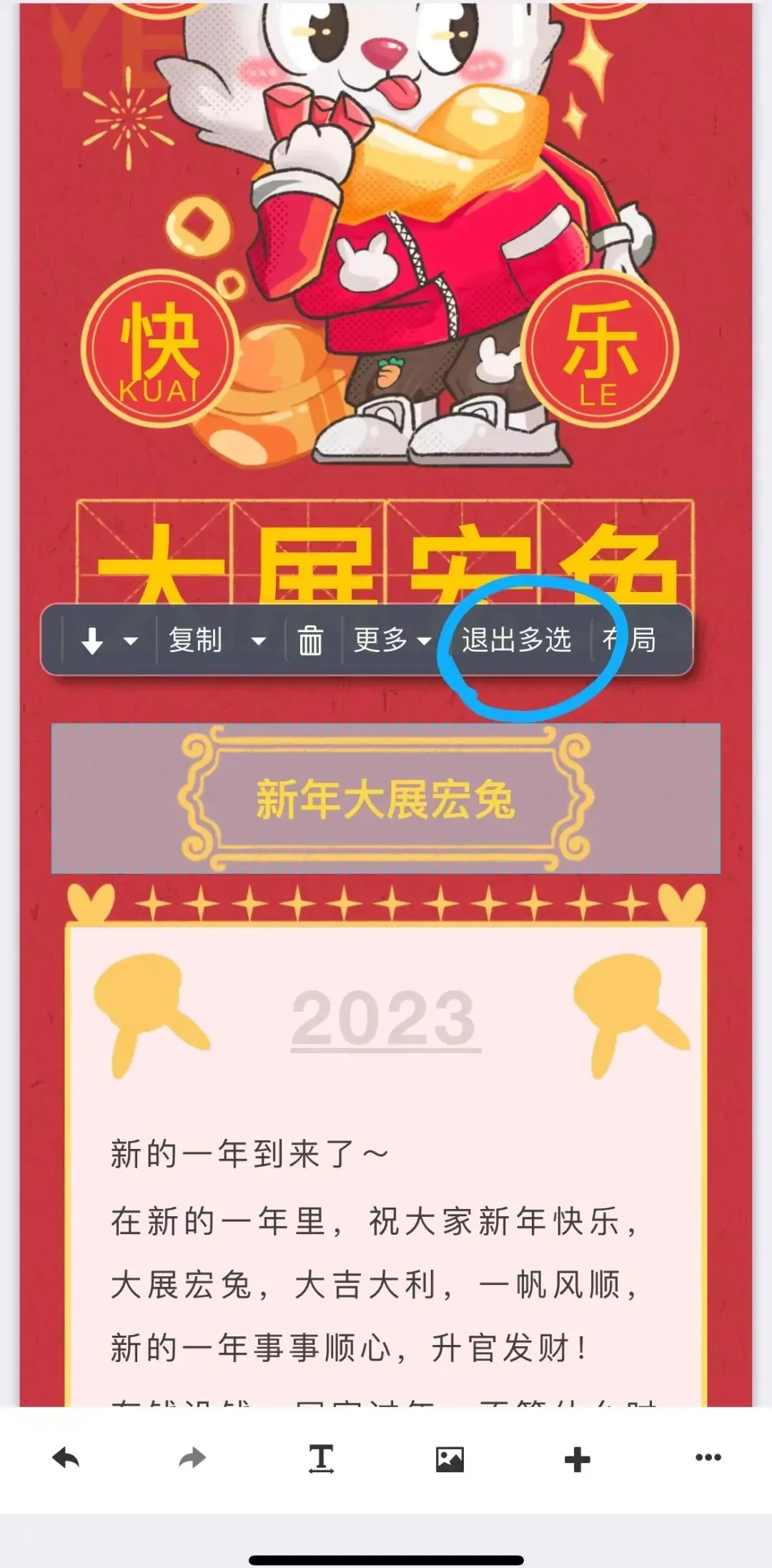 此时工具条上的”多选“会显示成”退出多选“: