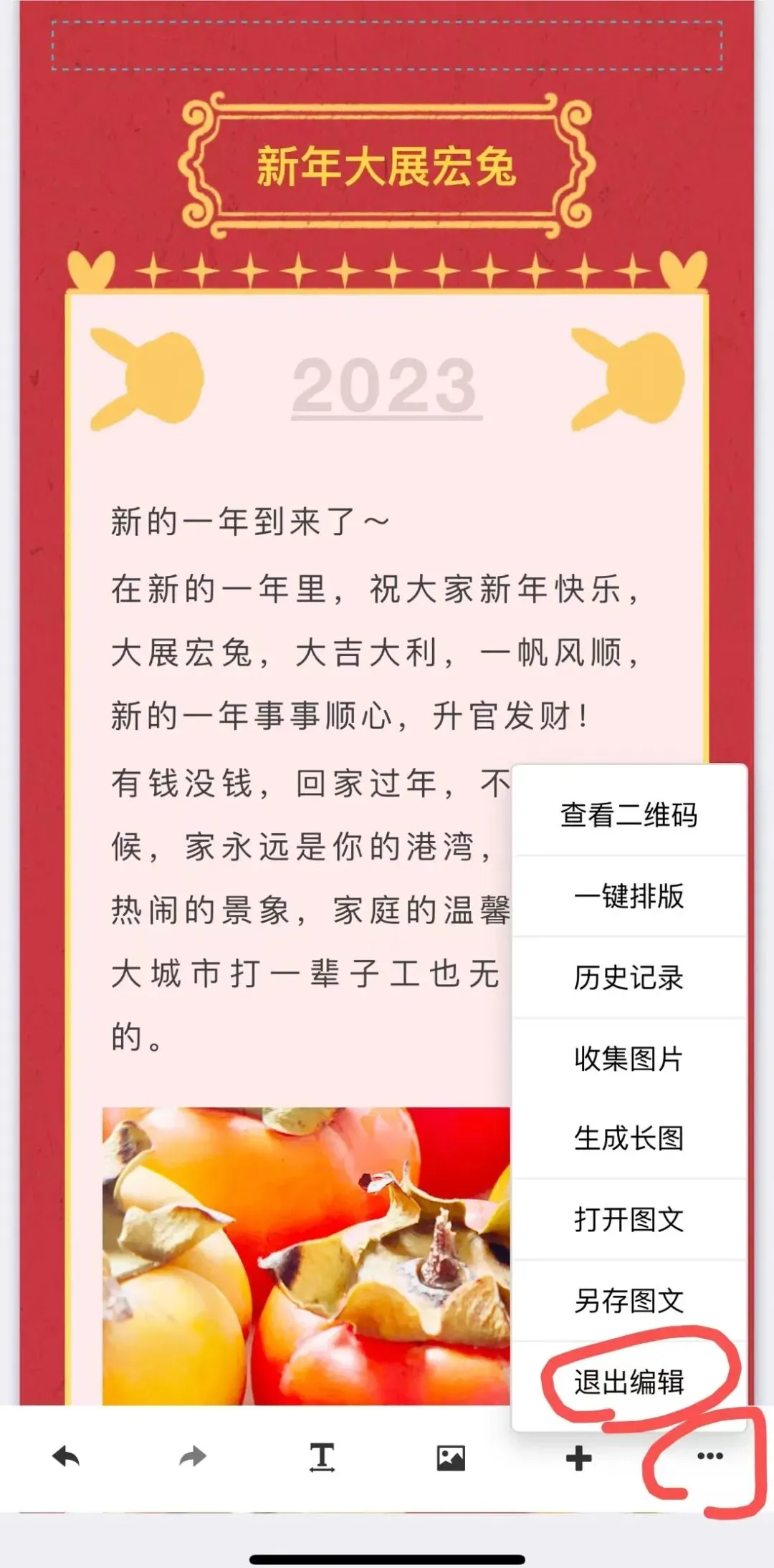 所有内容编辑替换完之后,点编辑界面右下角“···”里面的“退出编辑”就可以了,内容是自动保存的!