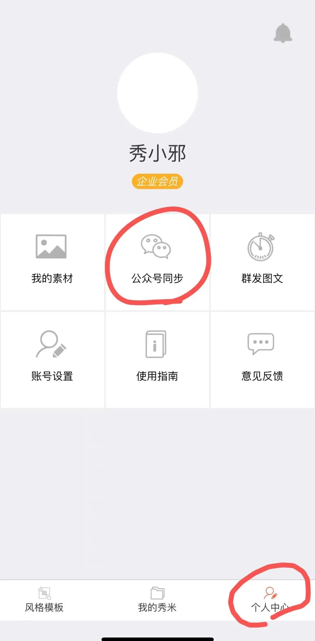 接着点页面底部的“个人中心”,再点页面上的“公众号同步”,把推文同步到公众号后台:
