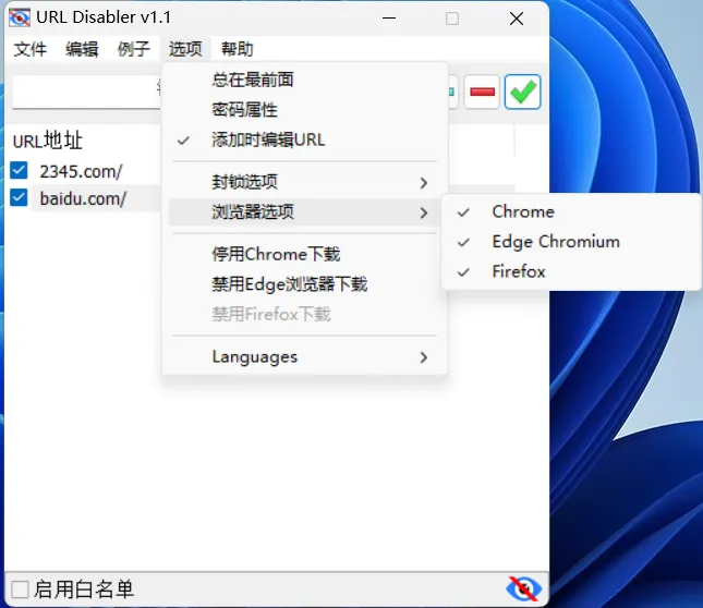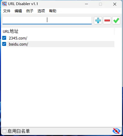 URL Disabler 可以将多个网页链接添加到访问黑名单,被加入黑名单的网页将无法使用浏览器正常访问。