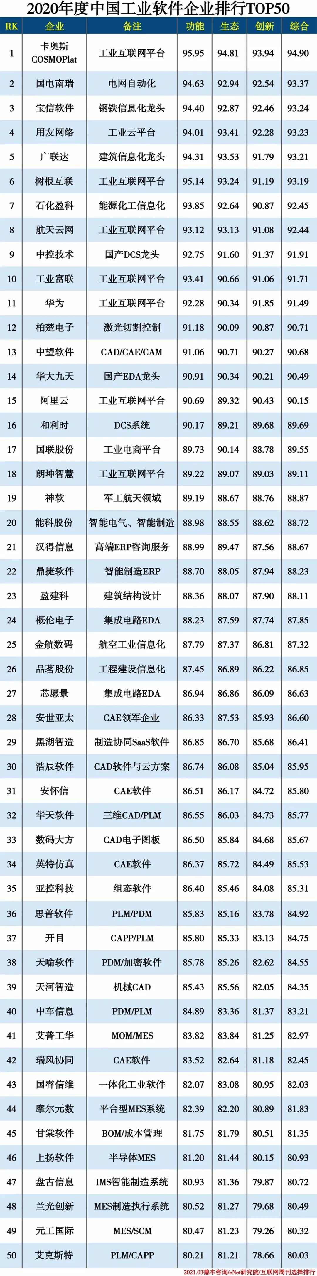 2020中国工业软件企业排行