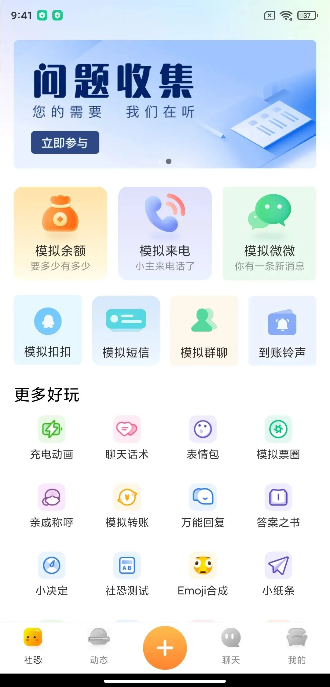 例如”模拟来电“功能,支持电话、微信、QQ三种不同的来电方式,而且还能设置头像、设置来电通话内容,还能接通,接通知后就会自动播放提前录制好的通话内容,效果非常逼真。