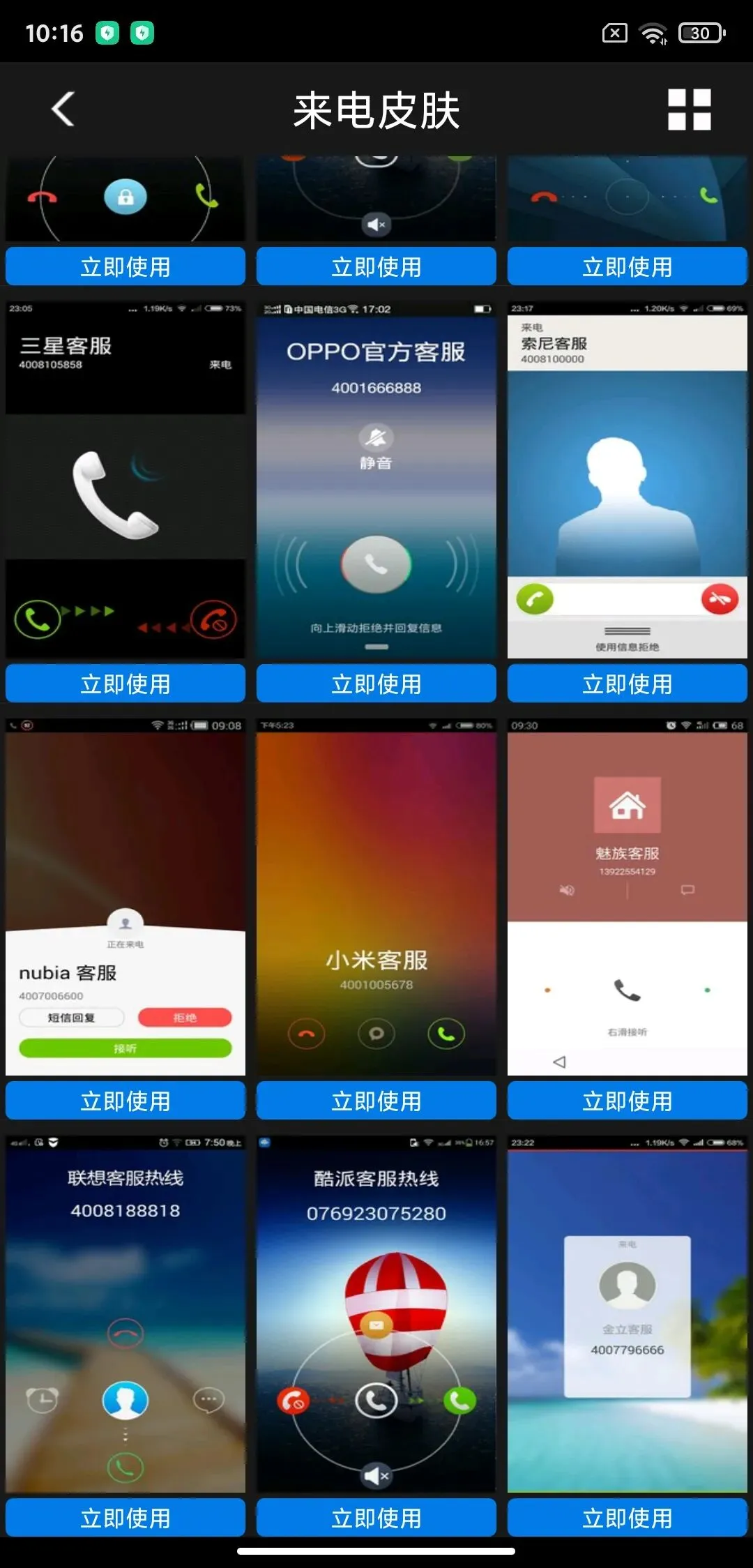 这一款功能没有上一款多,但是也很实用,大家需要的虚拟来电、虚拟短信、都是可以的,而且还支持小米、华为、OPPO、vivo、联想等各种机型的来电皮肤。