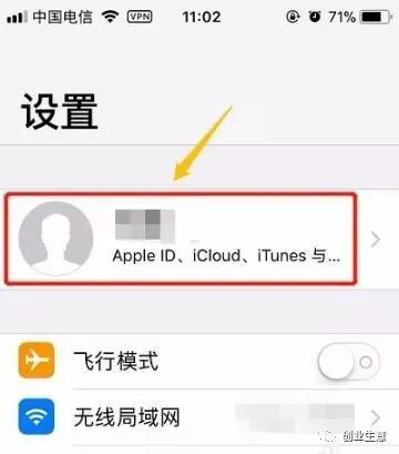 1、点击【设置】,然后在设置页的最上方点击我们的头像,如图所示;