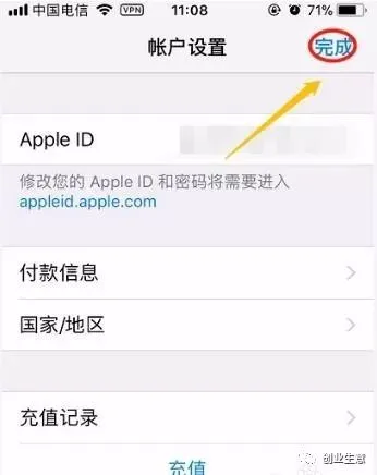4、如果密码忘记的话就需要去修改了,如果密码正确那么在账户设置界面点击右上角的【完成】,这时返回到App Store重新下载APP同样会弹出需要验证的窗口,不过下次就不用再次验证了,将验证码输入以后基本就解决此问题了;