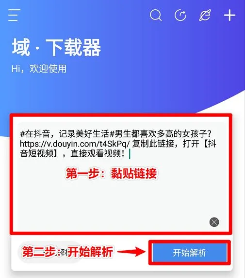 接下来打开域·下载器,把刚刚复制的链接直接黏贴在下载器中,链接中有文字内容也不用删除。