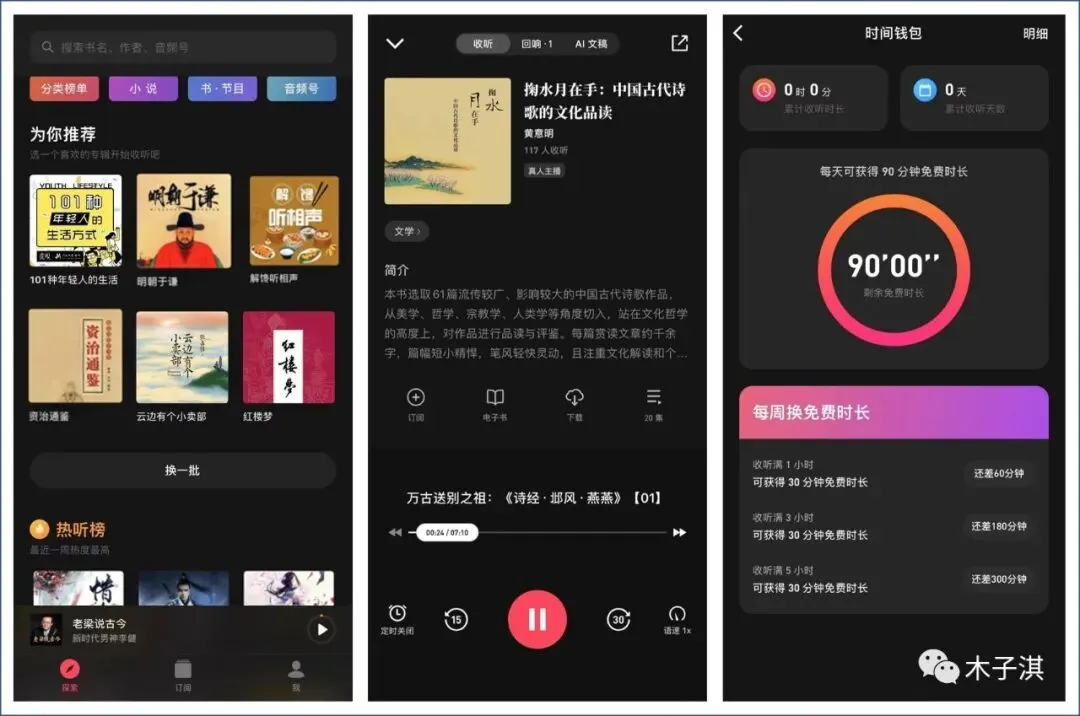 它之前支持每天赠送 60 分钟免费时长,现在是每天赠送 90 分钟免费时长,并且支持收听换时长,你听的时间越多,可以获得的免费时长也会越多。